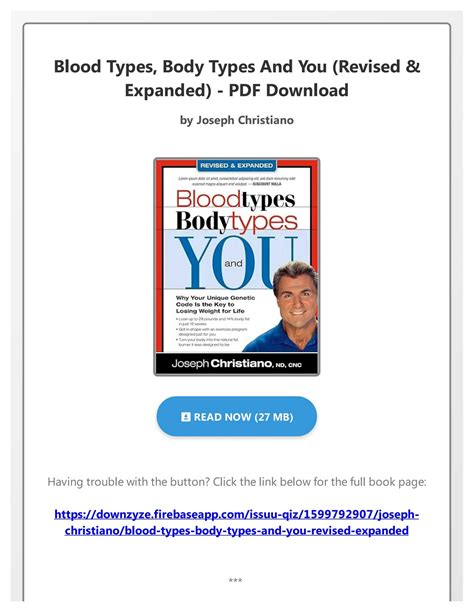 Download Blood Types Body Types And You Revised and Expanded Kindle Editon By Click Button. Blood Types Body Types And You Revised and Expanded it’s easy to recommend a new book category such as Novel, journal, comic, magazin, ect. You see it and you just know that the designer is also an author and understands the challenges involved with having a good book. You can easy klick for detailing book and you can read it online, even you can download it
